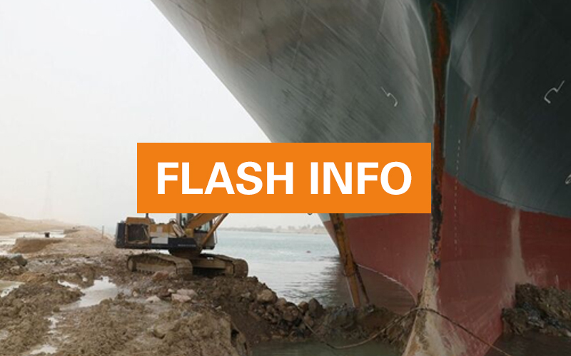 Le M/V EVER GIVEN s’est échoué le 23.03.21 aux alentours de 06:00 UTC durant sa traverse du Canal de Suez bloquant les deux sens de circulation.